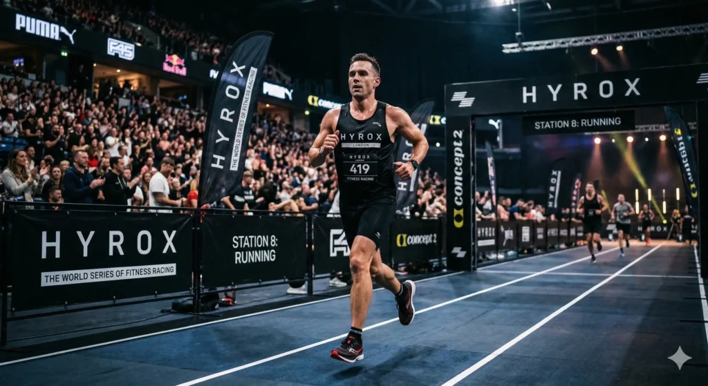HYROX is een fitnesswedstrijd waarin je 8 keer 1 km hardloopt, afgewisseld met 8 zware workouts zoals sled pushes en roeien. Het format is overal hetzelfde, waardoor je je prestaties wereldwijd kunt vergelijken. Geschikt voor zowel beginners als gevorderden.