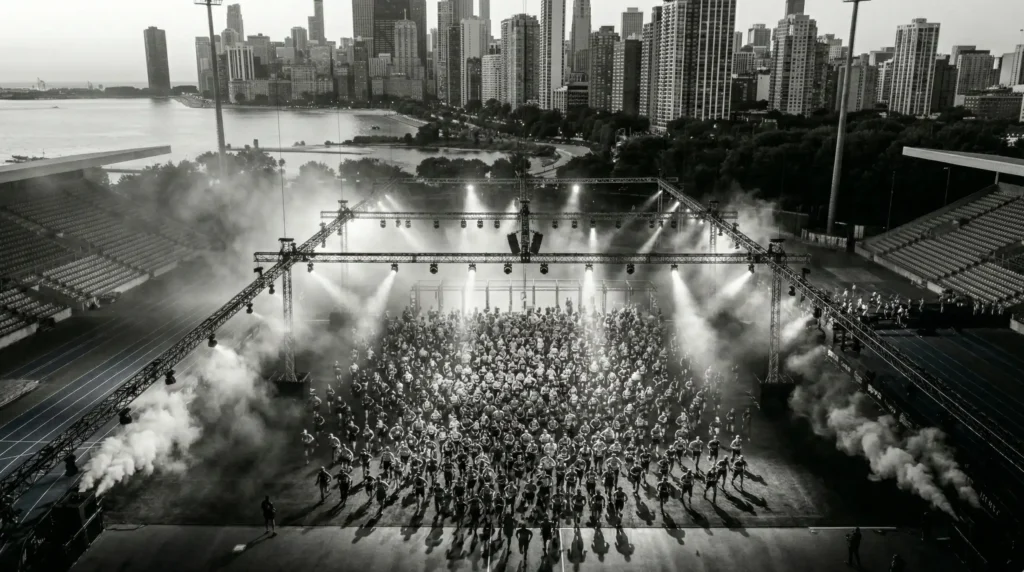 In je eerste race is het belangrijkste doel om niet ‘kapot’ te gaan op de sandbag lunges. Het is de eerste van de 8 oefeningen. Houd un constant tempo vast dat je the helle kilometer kunt volhouden. Focus op je ademhaling en techniek. Het is beter om iets rustiger te beginnen en te eindigen met energie, dan te snel te starten en de rest van de race te moeten herstellen.