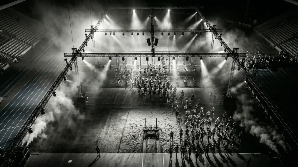 In je eerste race is het belangrijkste doel om niet ‘kapot’ te gaan op de wall balls. Het is de eerste van de 8 oefeningen. Houd un constant tempo vast dat je the helle kilometer kunt volhouden. Focus op je ademhaling en techniek. Het is beter om iets rustiger te beginnen en te eindigen met energie, dan te snel te starten en de rest van de race te moeten herstellen.